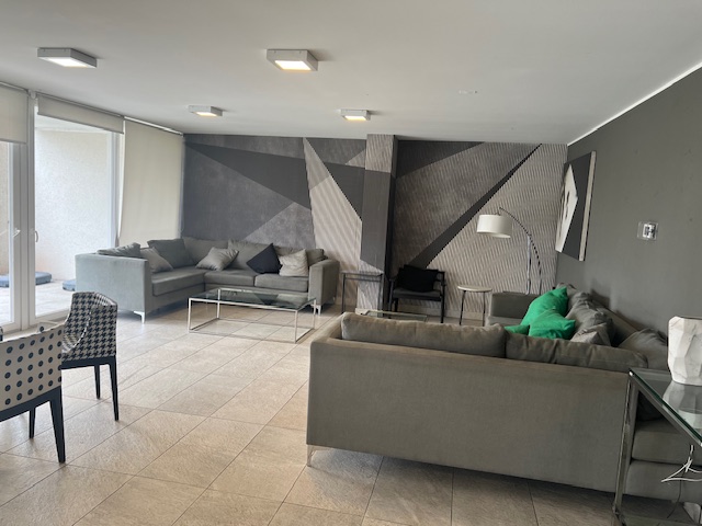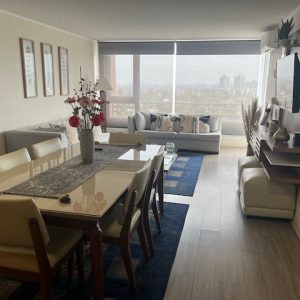 Departamento impecable con excelente distribución, de 94 mts2. totales aprox ., útiles 80 mts2. aprox., luminoso, amplio, buena orientación, amplia terraza con espectacular vista panorámica, toldo manual y malla recientemente puesta . Piso foto laminado de 8 mm en todo el departamento, ventanas termopanel , cerámica en baños y terraza, cuenta con rollers en todo el departamento y focos de alta gama.