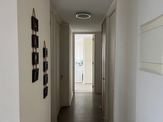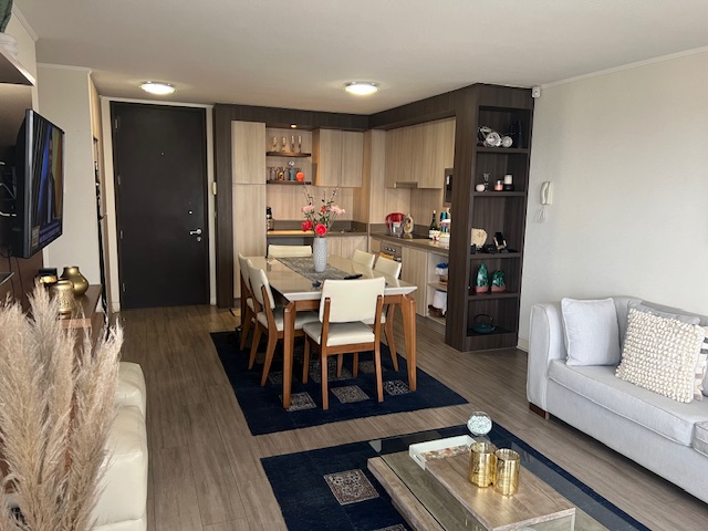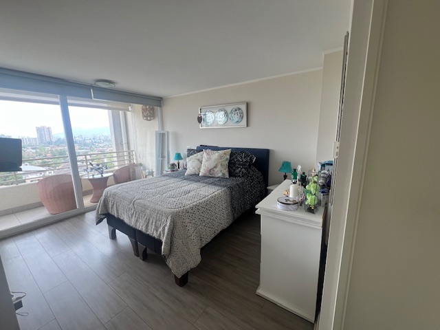 Precioso departamento como nuevo, hall de entrada, amplio living-comedor con salida a terraza, cocina integrada y equipada, cocina encimera, horno eléctrico, microondas, espacio conexión lavadora, muebles, y closet para guardar utensilios de aseo. Hall de dormitorios, 3 dormitorios, principal en suite con walking closet y salida a terraza, otros dos dormitorios con sus correspondientes closets, uno de los dormitorios con salida a terraza y el otro con ventanal y en pasillo baño completo, closets y home-office. Además cuenta con 2 estacionamientos y bodega .