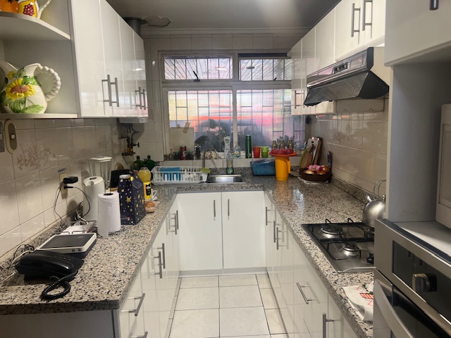 Cocina remodelada, cubierta granito, encimera, horno emprotado, campana, despensa, salida a amplio patio servicio con lavadero, servicios completos con entrada independiente. Además cuenta con 3 estacionamientos al interior, dos techados uno descubierto y al exterior de la casa cuenta con la habilitación para dos bodegas.