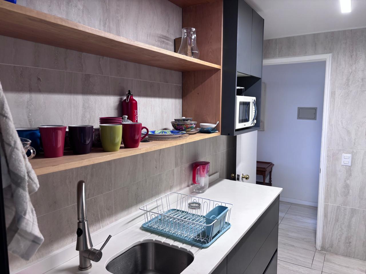 Excelente departamento totalmente remodelado con finas terminaciones, amplio living-comedor con salida a terraza, dormitorio principal en suite con salida a terraza , segundo y tercer dormitorio con sus closets y baño completo en pasillo. Cocina independiente equipada y amoblada, encimera, horno, campana y logia. Cuenta con estacionamiento y bodega.