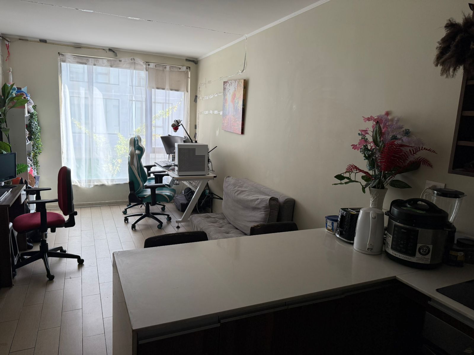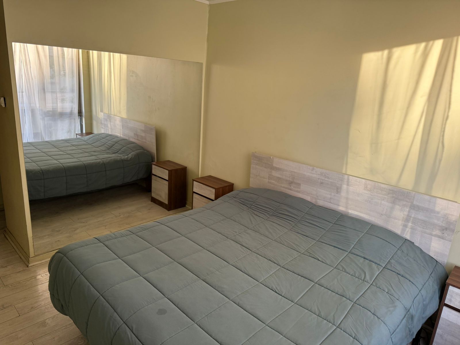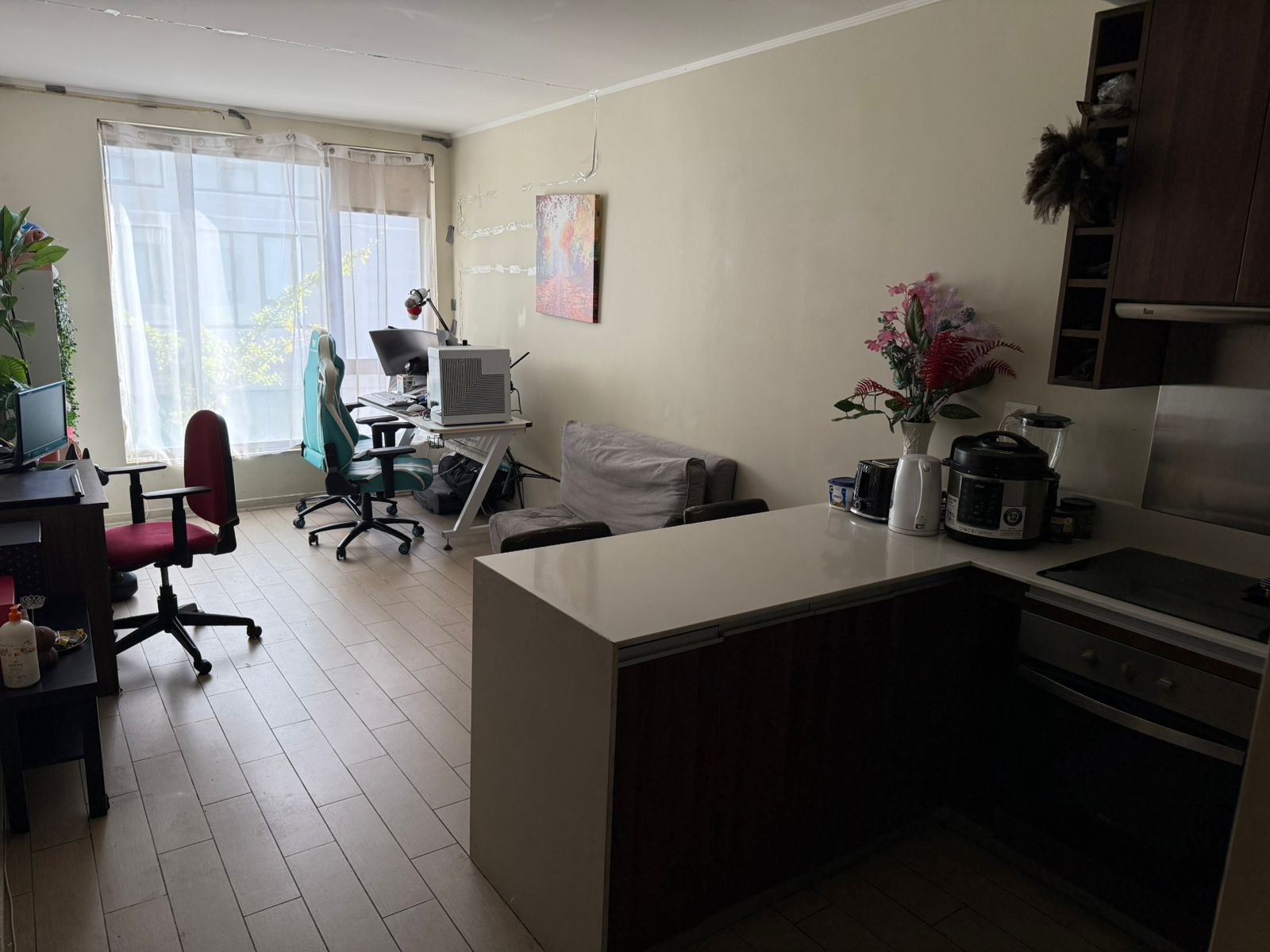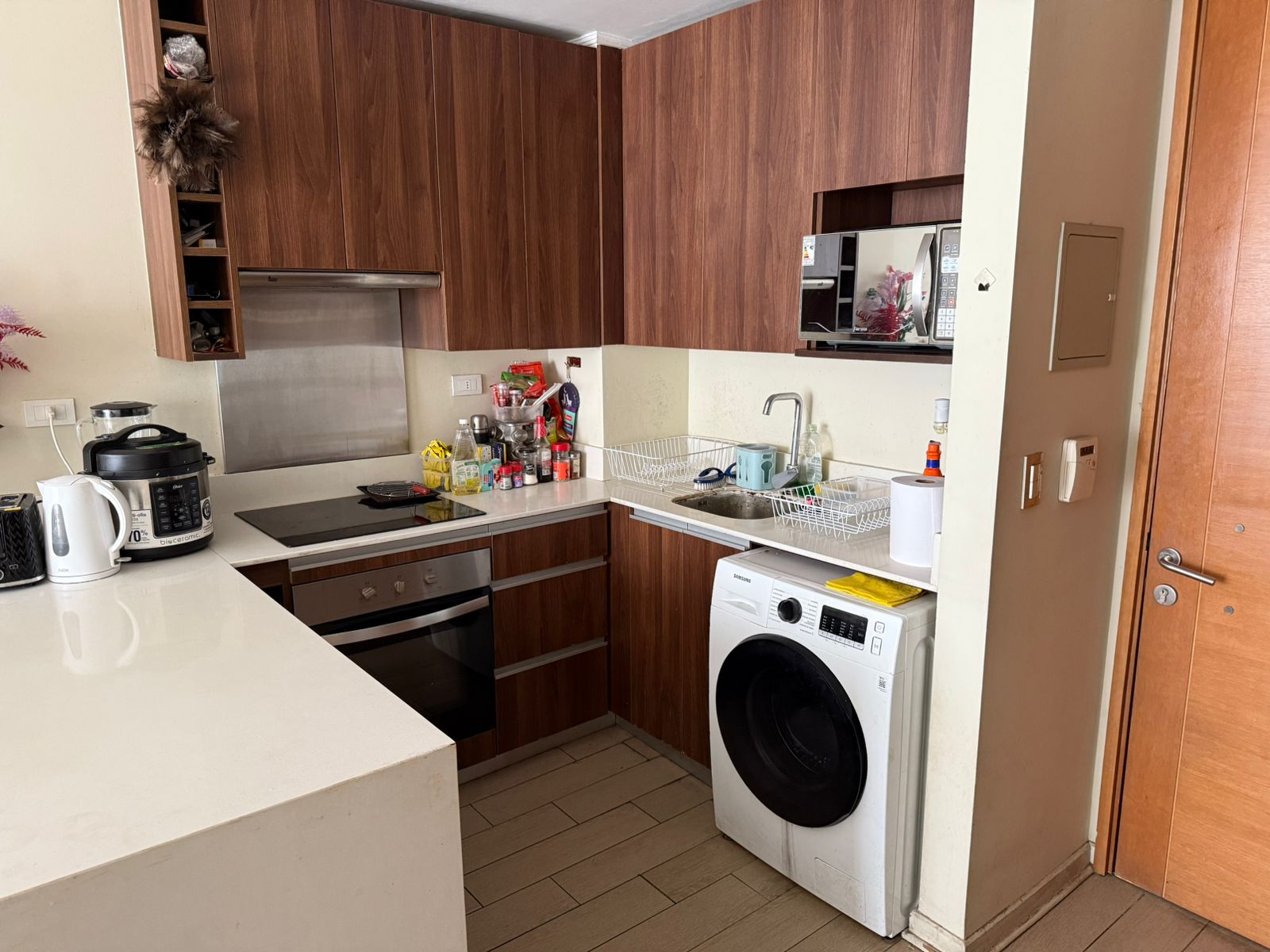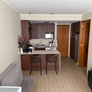 Departamento como nuevo con buena distribución, de 45 mts2. totales, luminoso, amplio, piso flotante en living-comedor y pasillos, alfombra bouclé en dormitorio, piso de porcelanato de 30×60 en baño y cocina. Muebles de cocina con cubierta de cuarzo, vanitorio con cubierta de mármol, lavamanos bajo cubierta. Cocina equipada con campana, encimera, horno eléctrico y microondas. Puertas de acceso al departamento de madera sólida, puertas interiores enchapadas, ventanales con termopanel para aislación térmica y acústica. Agua caliente apoyada por paneles solares, aislamiento térmico en muros exteriores.-