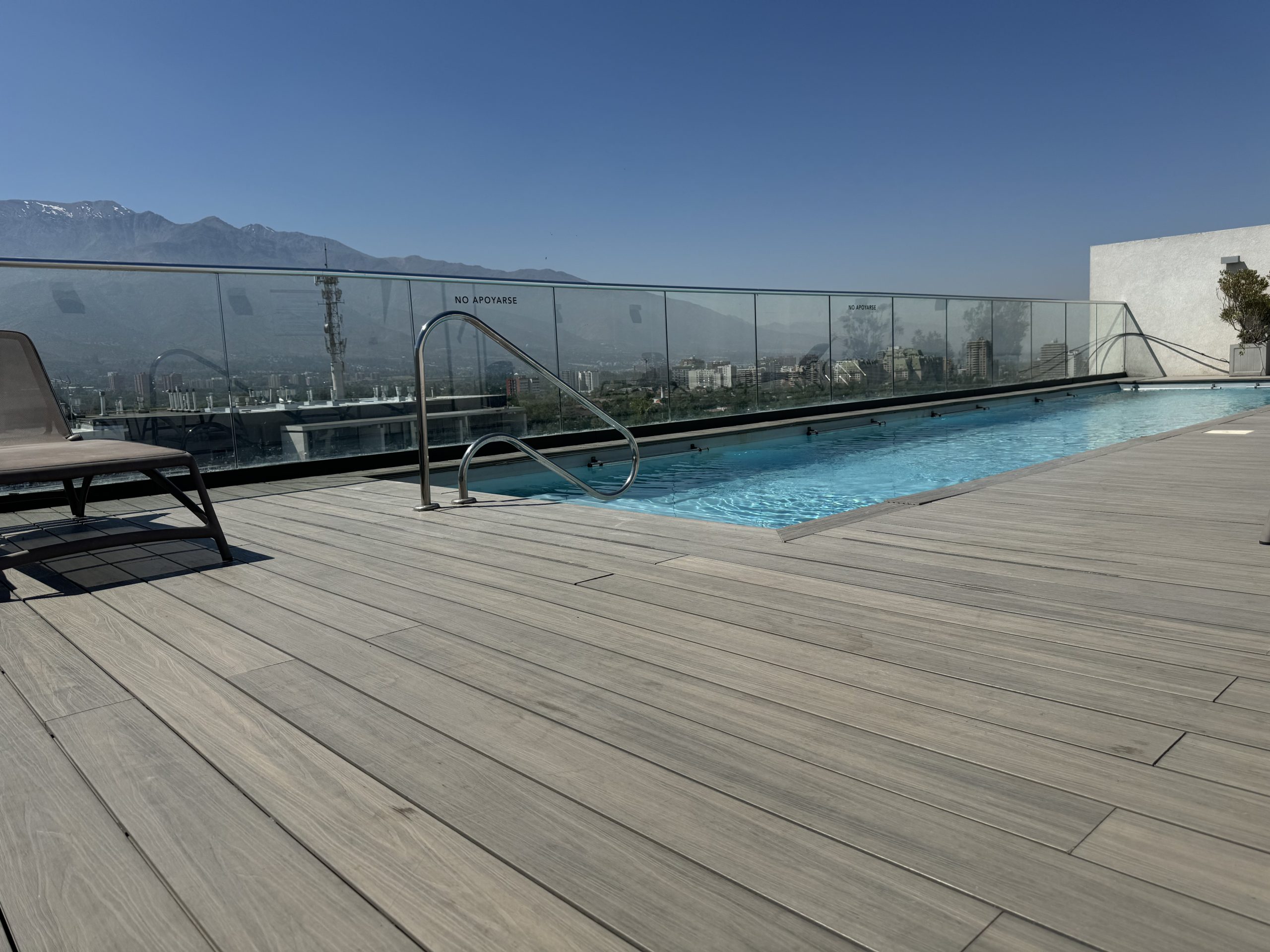 Edificio impecable año 2018 de 9 pisos , en los primeros 8 pisos se encuentran los departamentos que son de 4 por ala, y en el piso 9 se encuentra la piscina y quincho panorámico, primer piso preciosa sala eventos y gimnasio totalmente equipado, además cuenta con ascensores, estacionamiento visitas, acceso con sistemas de seguridad, cerco eléctrico, conserjería 24/7.